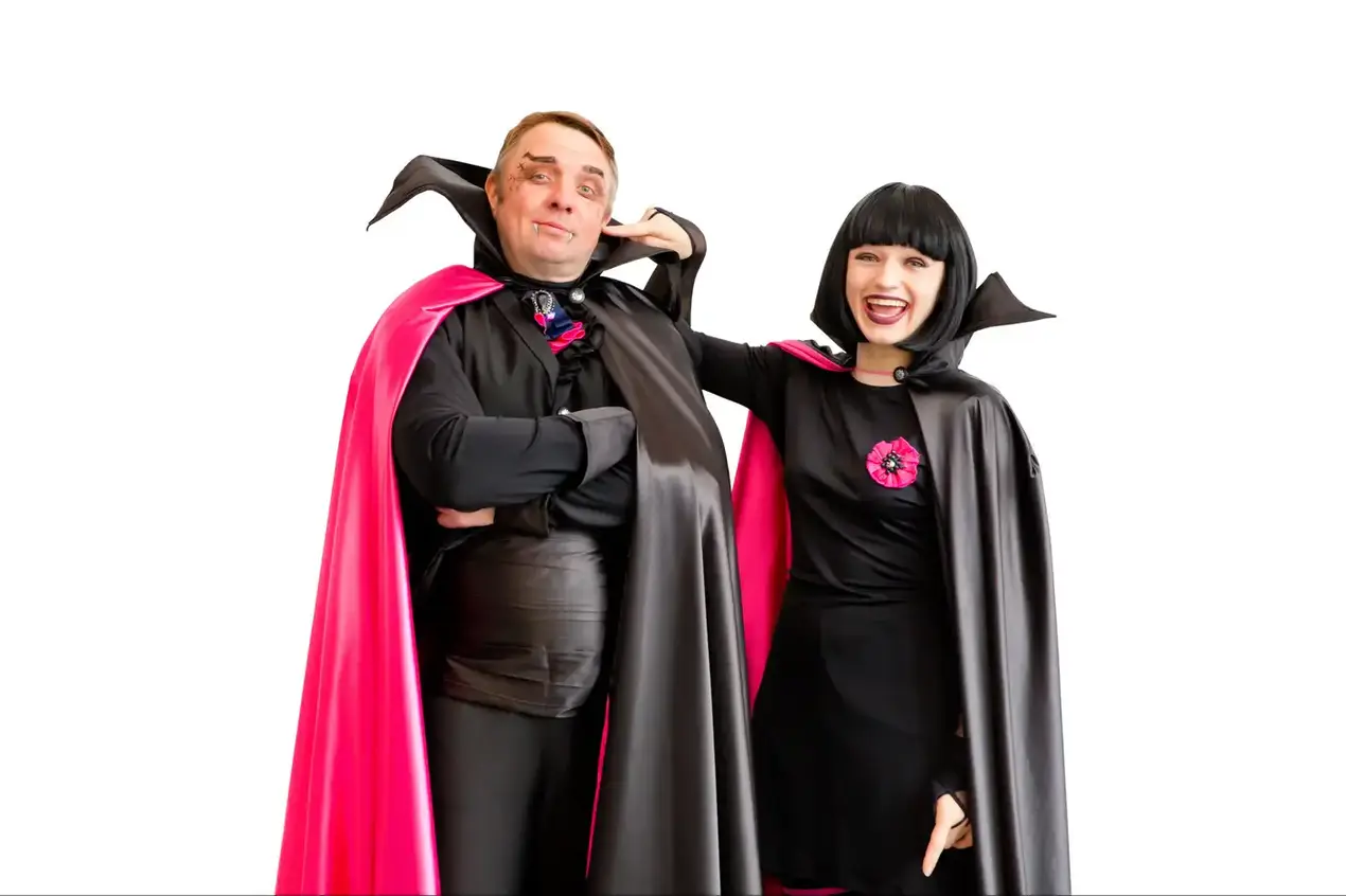 Аниматор Дракула не просто заботливый хозяин и добрый отец, он еще и веселый танцор способный увлечь своим задором всех гостей.