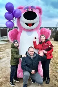Аэро куклы на праздник – это одна из самых востребованных услуг, которая способна удивить родных и близких. Только представьте сколько радости будет у родного человека, когда на пороге он встретит большую куклу. Аэро медведь в Минске под веселую музыку появляется с охапкой разноцветных шаров. Высота куклы примерно 2.6 метра, поэтому можно смело назвать ее очень большим сюрпризом. Место поздравление не имеет значения, если открытое пространство или очень высокие потолки.